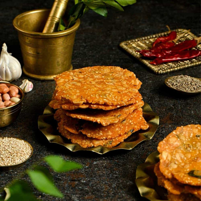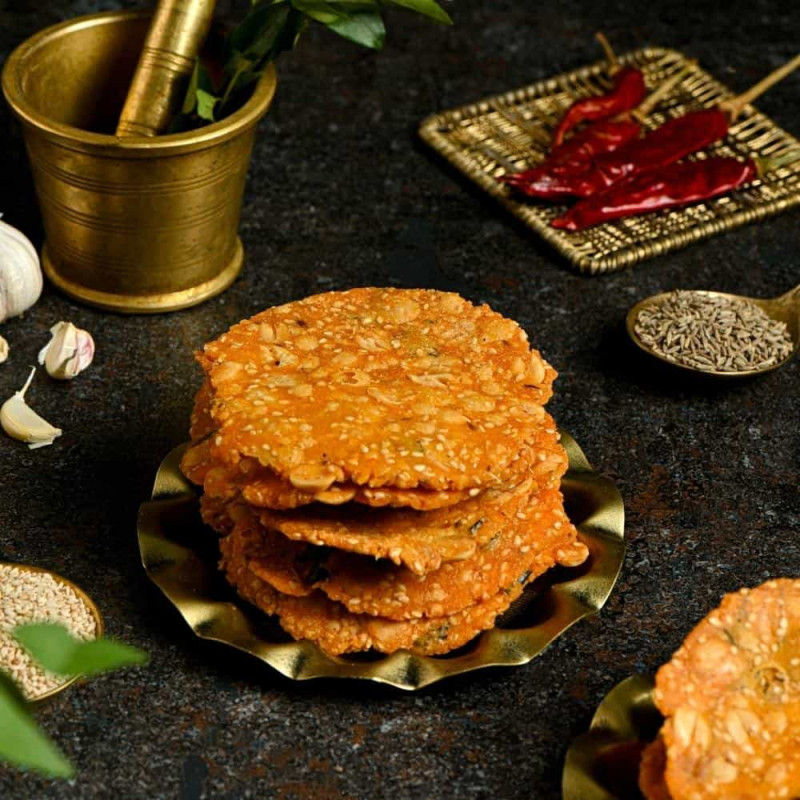 Experience a unique burst of flavors with Savithramma's Palli Garelu! This traditional Indian snack marries the nutty goodness of groundnuts with the spiciness of red chili powder, all bound together by the delicate blend of rice flour, sesame seeds, cumin, garlic, curry leaves, salt, and sunflower oil. Savithramma's Palli Garelu is a delicious crunchy journey into the heart of Indian snack culture, available in 250g, 500g, and 1Kg packs for your convenience. Made with fresh, locally-sourced ingredients, every bite of our Palli Garelu is a promise of quality, taste, and authenticity.