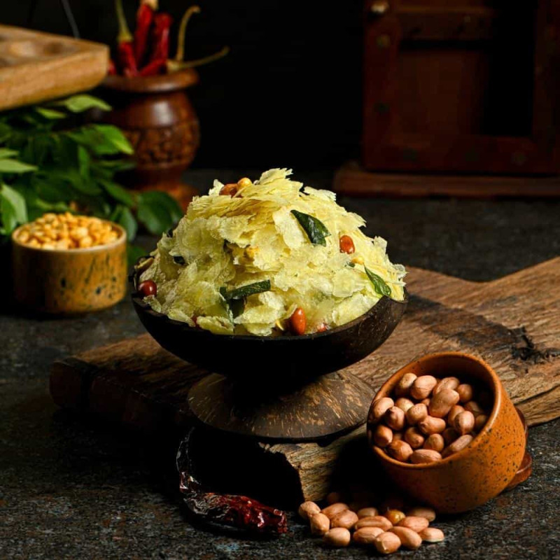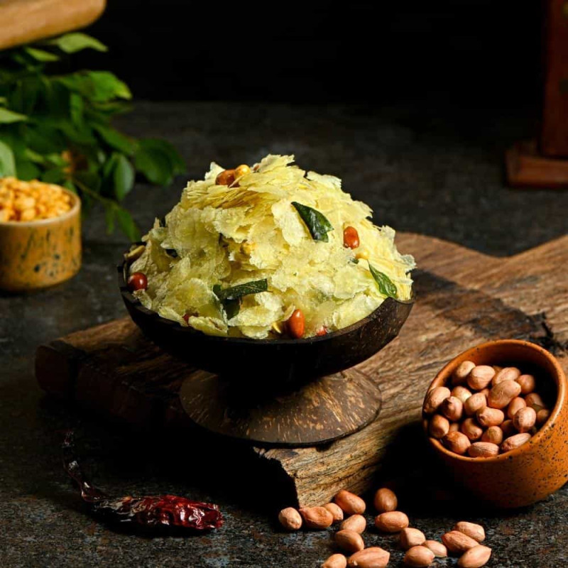 Indulge in the nostalgic flavors of Savithramma's Chudva, a time-honored Indian snack that has won hearts over generations. The heart of this snack lies in its high-quality ingredients - fluffy flattened rice, hearty roasted chana dal, and crunchy ground nuts, all perfectly seasoned with a symphony of spices including coriander seeds, turmeric, mustard, cumin, and curry leaves. A dash of salt and a sprinkle of dry red chillies add the perfect kick to this delectable snack. Fried to perfection in sunflower oil, our Chudva is available in 250gms, 500gms, and 1Kg packs, ready to delight your taste buds whenever the craving strikes. Embrace the magic of traditional Indian snacking with Savithramma's Chudva.
