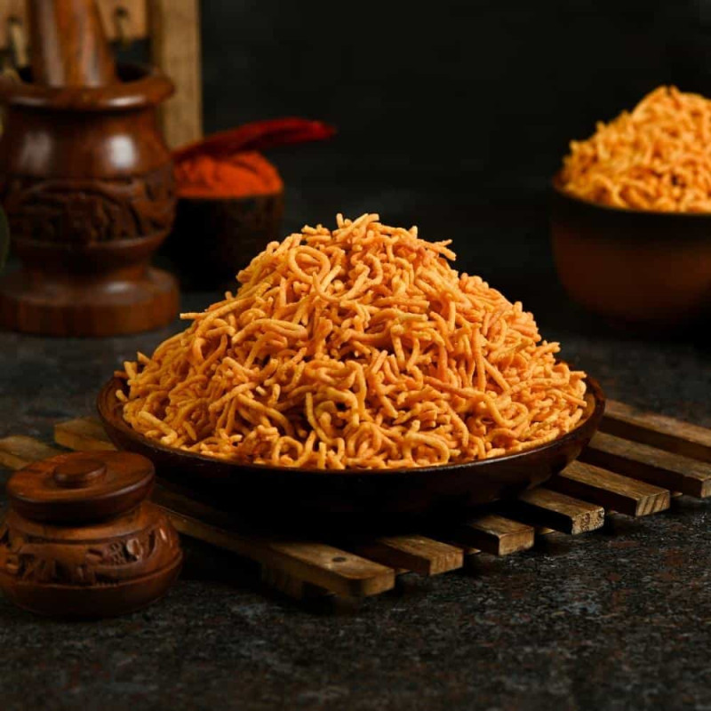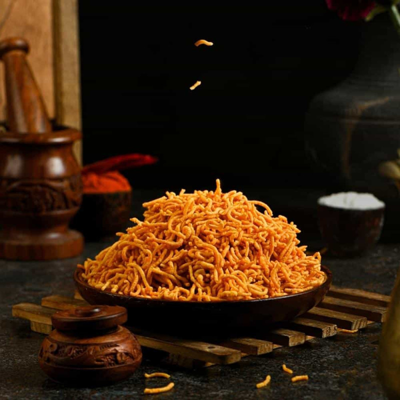 Experience the traditional Indian snacking experience with Savithramma's Mixture. This flavorful snack is crafted from high-quality besan flour, groundnuts, curry leaves, garlic, red chili powder, salt, and sunflower oil, delivering a crunchiness and taste that's hard to resist. Each ingredient adds its unique flavor, culminating in a snack that is spicy, crunchy, and utterly delightful. Whether it's a quiet evening at home or a festive gathering, our Mixture, offered in 250g, 500g, and 1Kg packs, is sure to enhance the occasion. Enjoy the authenticity of Indian flavors with Savithramma's Mixture.