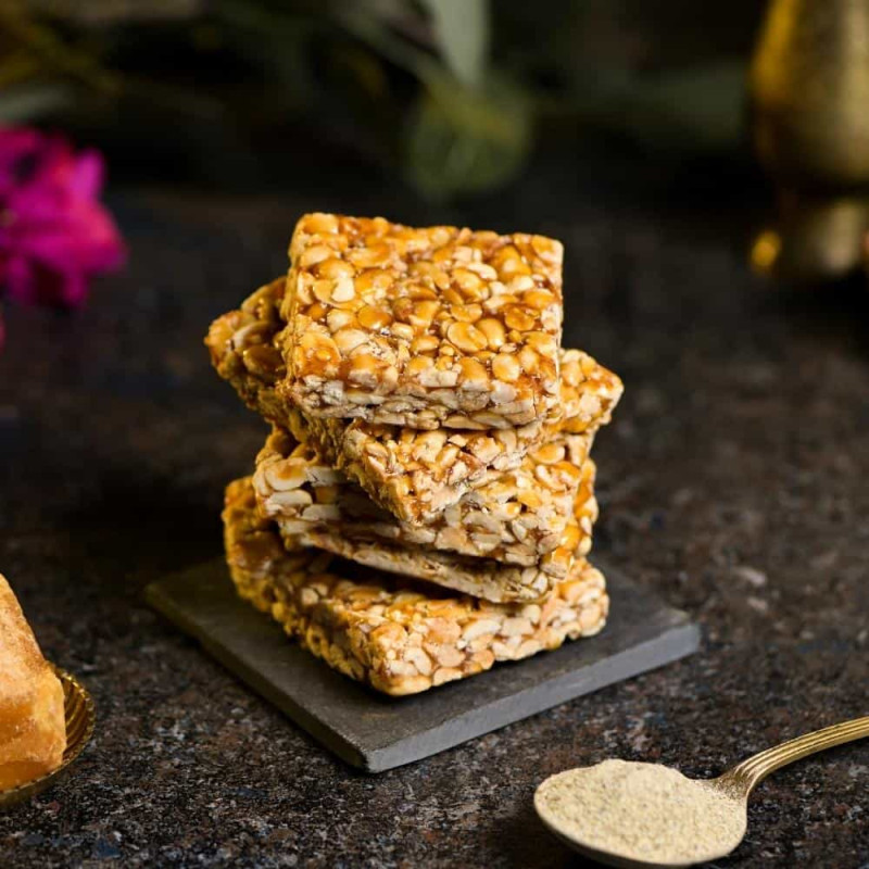 Indulge in the nutty delight of Savithramma's Palli Patti, a traditional Indian sweet that will tantalize your taste buds. Made with roasted groundnuts, jaggery, and a touch of aromatic cardamom powder, these sweets offer a delightful combination of flavors and textures. Each bite is a celebration of the rich and earthy taste of groundnuts, complemented by the natural sweetness of jaggery and the fragrant notes of cardamom. Savithramma's Palli Patti is available in 250gms, 500gms, and 1Kg quantities, allowing you to enjoy this sweet treat at any time. Whether you're craving a mid-day snack or need something to satisfy your sweet tooth after a meal, these nutty delights are the perfect choice. Experience the perfect blend of flavors and textures with Savithramma's Palli Patti and let it transport you to a world of sweet indulgence.