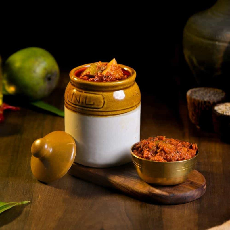 Introducing Savithramma's Tangy Pickle Delight - Avakaya. Our pickles are a symphony of flavors, combining cut mango, sesame powder, cumin, red chilly powder, mustard, salt, menthi powder, and sunflower oil. Made with fresh, locally sourced ingredients, they offer an authentic taste experience. Whether you choose the 250gms, 500gms, or 1Kg pack, you're in for a treat that elevates your meals. Spice up your dining with Savithramma's Avakaya, the essence of Indian pickle tradition.